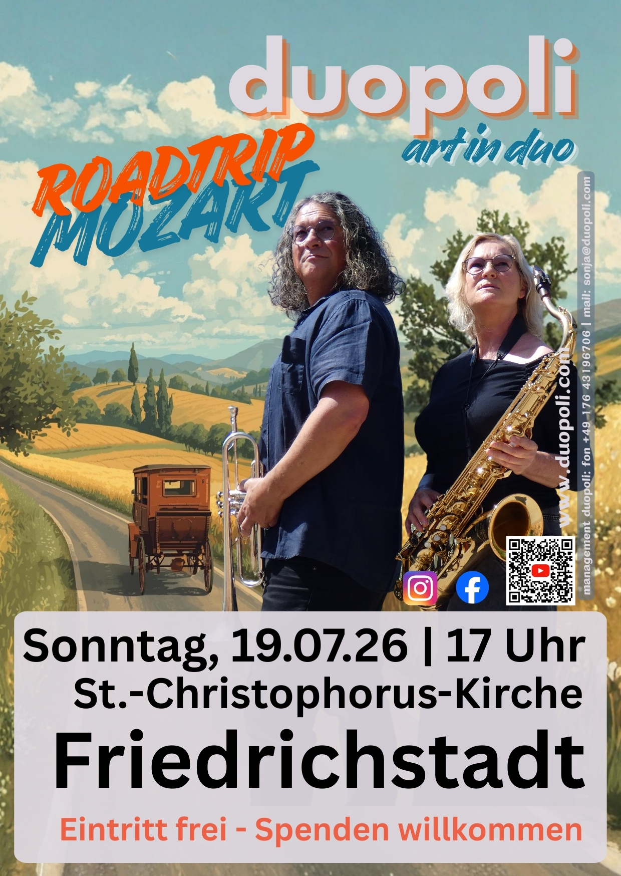 19. Juli 2026, 17.00 UhrSt. Christophorus, 25840 FriedrichstadtRoadTrip MOZART