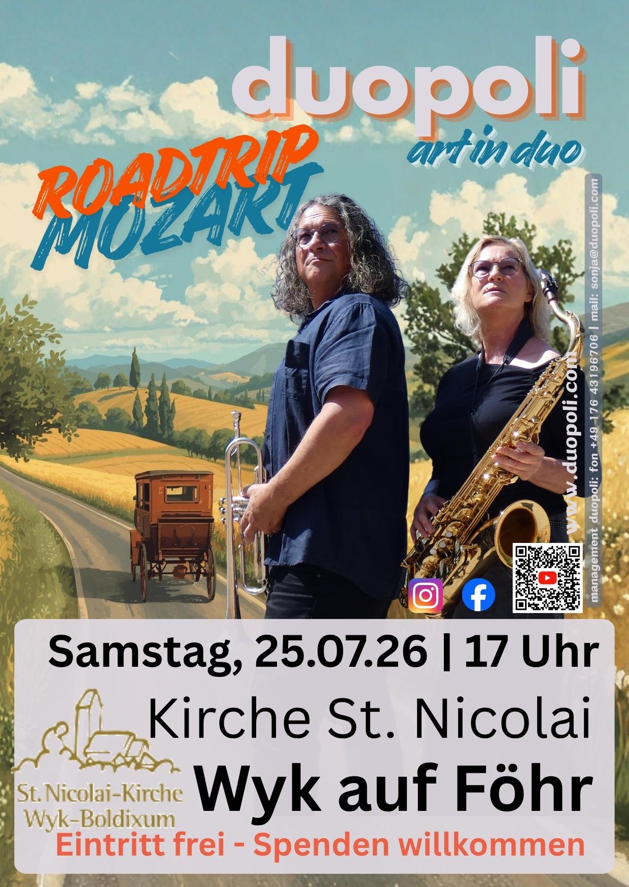 25. Juli 2026, 17.00 UhrKirche St. Nicolai, 25938 Wyk auf FöhrRoadTrip MOZART
