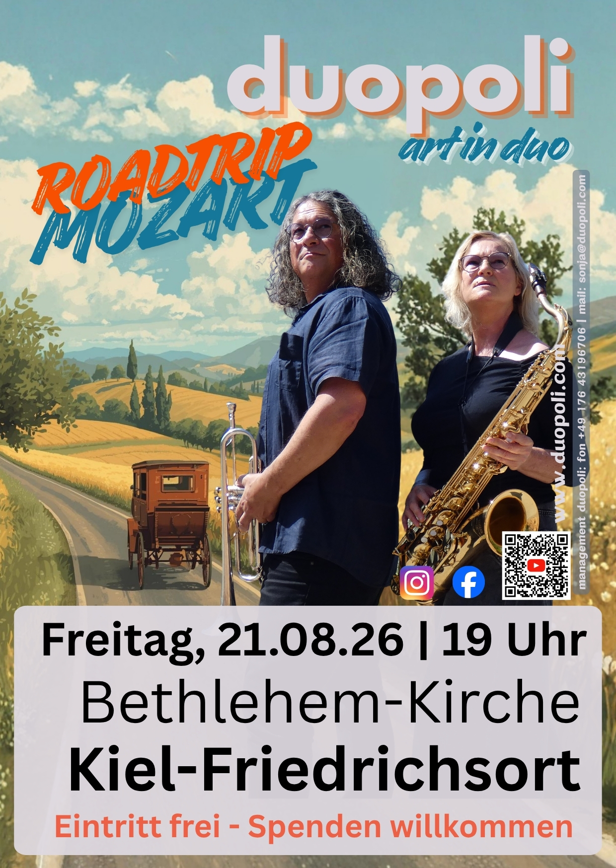 21. August 2026, 19.00 UhrBethlehemkirche, 24159 Kiel-FriedrichsortRoadTrip MOZART