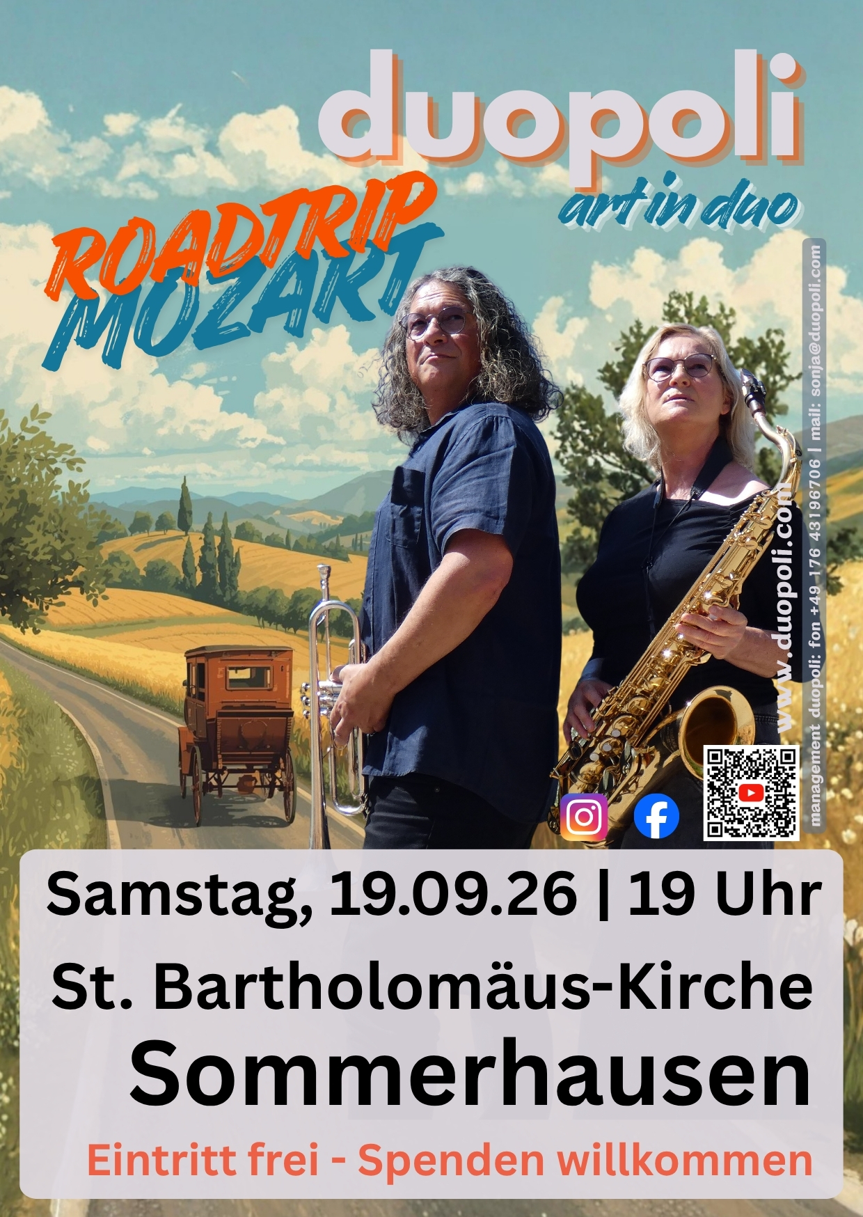 19. Sept. 2026, 19.00 UhrSt. Bartholomäus, 97286 SommerhausenRoadTrip MOZART