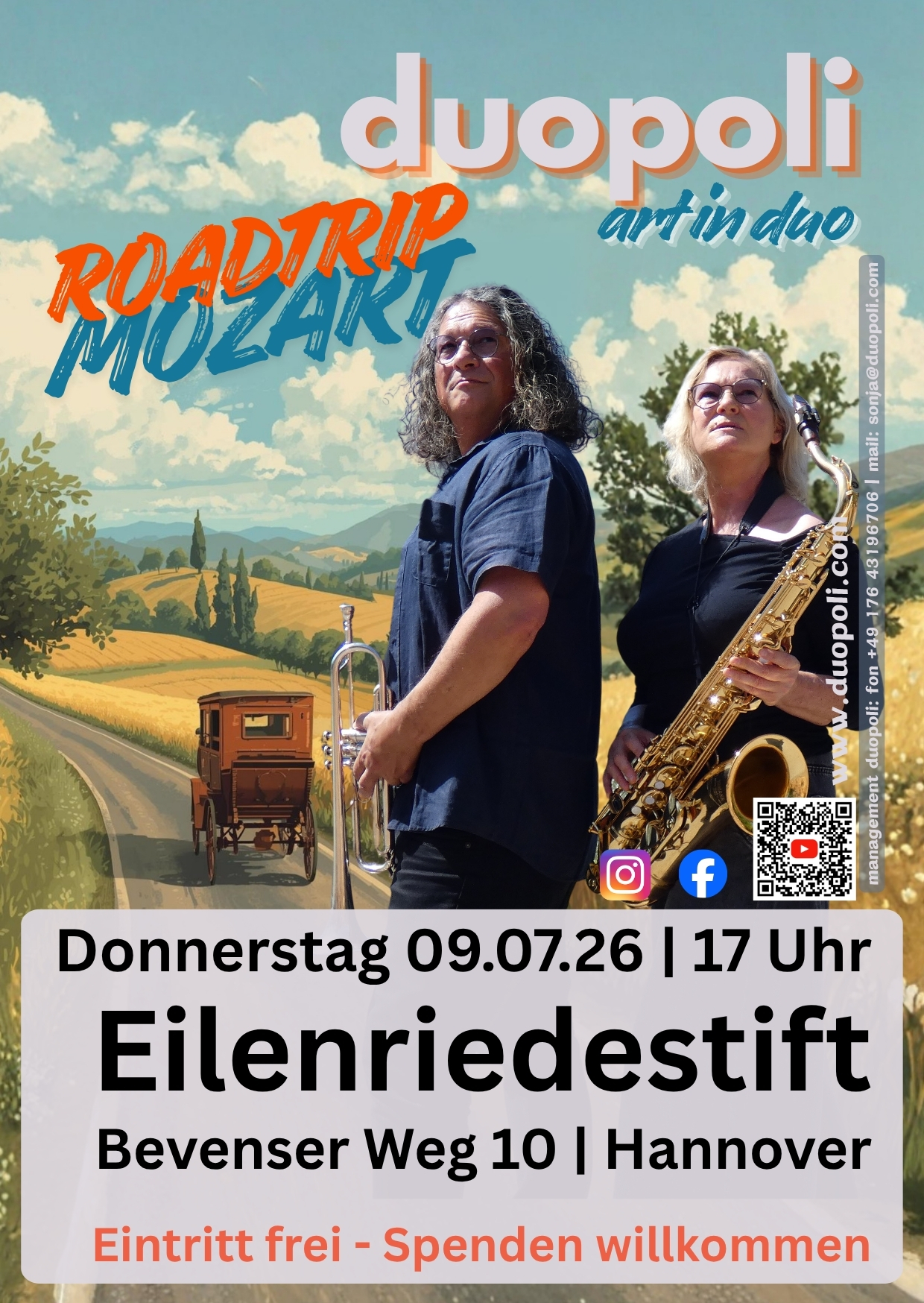 9. Juli 2026, 17.00 UhrEilenriedestift, Bevenser Weg 10, 30625 HannoverRoadTrip MOZART